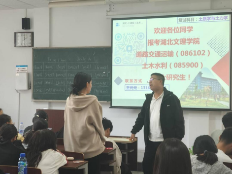 2025年10月14日,湖北文理学院土木工程与建筑学院院长李业学、教学委员会副主任尹晓萌、道路桥梁工程系书记周兴涛、学工办张萍一行四人来到我院,于J3-101教室举办研究生招生宣讲会,吸引2022级、2023级百余名学生积极参与。宣讲会由周兴涛书记主讲,他首先介绍了湖北文理学院的办学定位与整体特色,随后以“学科优势与培养特色”为主题,重点展示了该院土木工程与建筑学院的师资配置、重点实验室建设以及特色研究方向,结合具体学术成果生动呈现了学院的科研氛围与学科竞争力。在报考政策环节,周书记围绕2025年硕士研究生招生计划、报考条件及奖学金政策等内容进行了细致说明,帮助同学们把握关键报考信息。互动环节中,学生们踊跃提问,就毕业生就业率与就业质量、历年录取分数等热点问题与宣讲老师深入交流,现场气氛热烈。