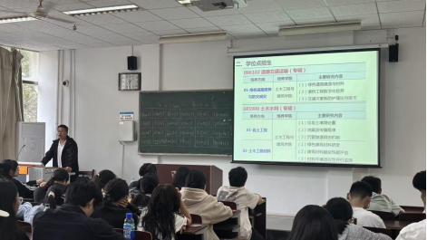 2025年10月13日,武汉轻工大学研究生招生宣讲团在J2-101教室率先开展宣讲。学院相关负责人、辅导员及数百名有志考研的学子参加了活动。宣讲会上,招生团队系统介绍了学校的办学历史、学科布局、科研平台与研究生培养特色,并聚焦土木建筑工程专业,详细解读了其师资力量、研究方向与代表性学术成果,增进了同学们对该校学科实力的整体了解。在政策解读环节,宣讲团就2026年硕士招生专业目录、招生计划、报考条件、考试科目及复试流程等关键信息作了清晰说明,并特别针对我院学生介绍了推免政策、专项计划与奖助体系,为学生科学选报提供了重要参考。
