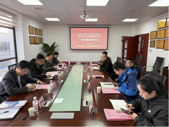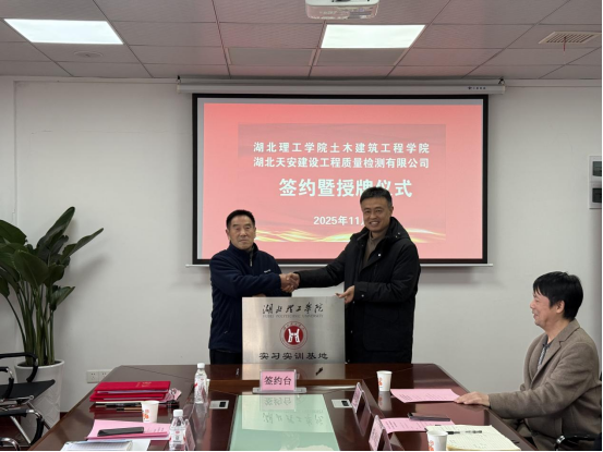 11月18日下午,太阳成集团tyc234cc主页与湖北天安建设工程质量检测有限公司共建实习实训基地签约揭牌仪式在公司三楼会议室举行,太阳成集团tyc234cc主页院长袁建议、副院长秦立平、教研室主任徐健强、博士张鹏远、办公室主任刘红力,湖北天安建设工程质量检测有限公司董事长朱纯时、总经理祝海龙、总工及技术负责人夏战红、副总经理张吉江、办公室主任朱宸等参加了本次活动。